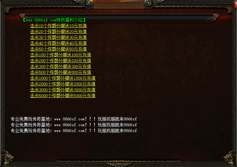 - 【游戏特色】: 小怪爆充值点、赞助免费打、所有特殊、赞助地图任意进、100%切割所有怪物 爆爆爆
